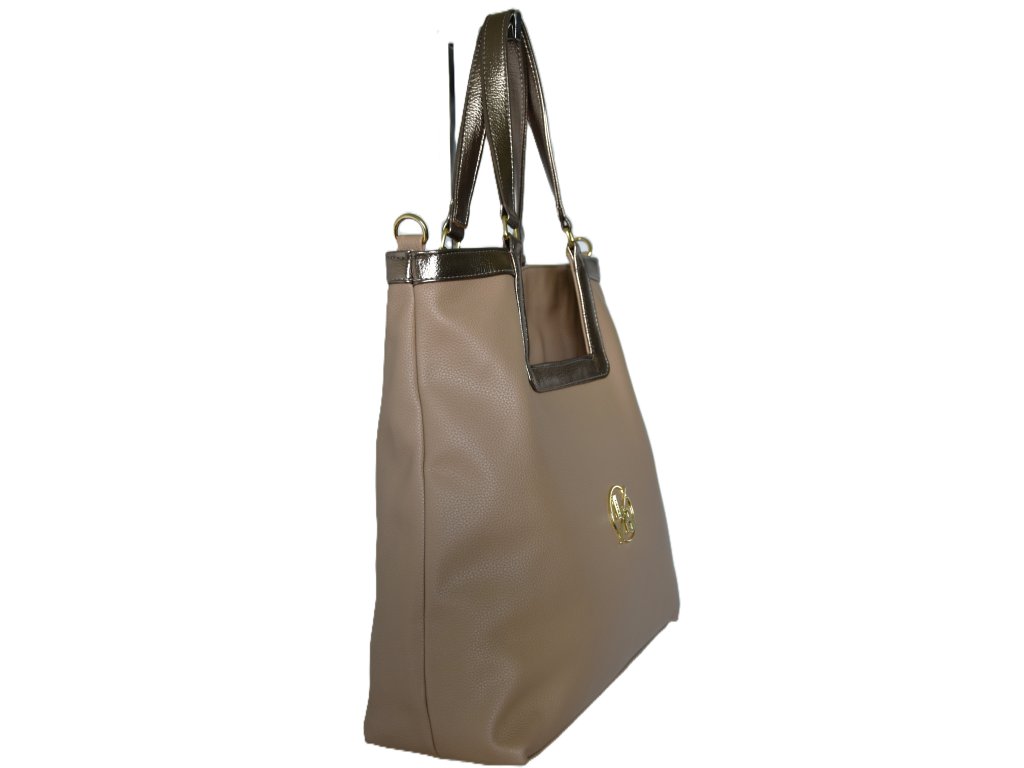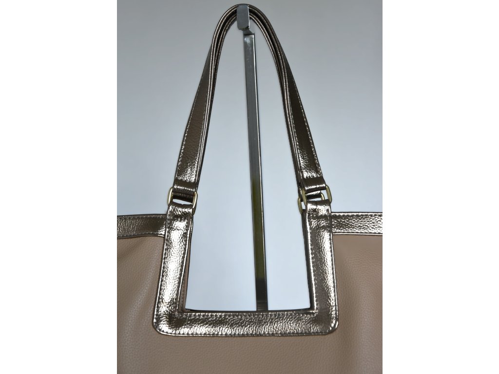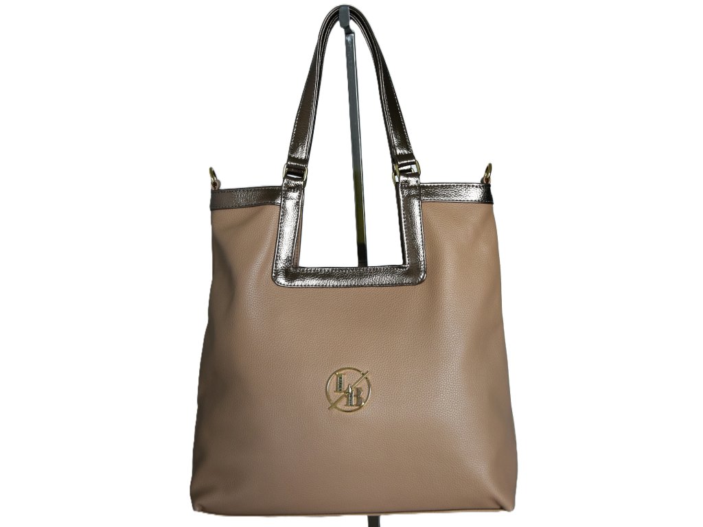 Luxusní kabelka od značky Laura Biaggi. Velká, super úložná. Dostatečně dlouhé uši pro pohodlné nošení na rameni. Hnědé lemování kabelky v metalické barvě + uši. Na zadním dílu kabelky je velká kapsa se zipem. Uvnitř kabelky je velká kapsa se zipem a velká kapsa bez uzávěru. Kabelka je v nabídce v černé, hnědé a béžové barvě