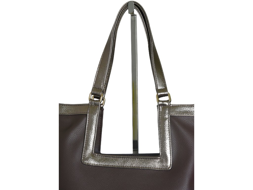 Luxusní kabelka od značky Laura Biaggi. Velká, super úložná. Dostatečně dlouhé uši pro pohodlné nošení na rameni. Hnědé lemování kabelky v metalické barvě + uši. Na zadním dílu kabelky je velká kapsa se zipem. Uvnitř kabelky je velká kapsa se zipem a velká kapsa bez uzávěru. Kabelka je v nabídce v černé, hnědé a béžové barvě